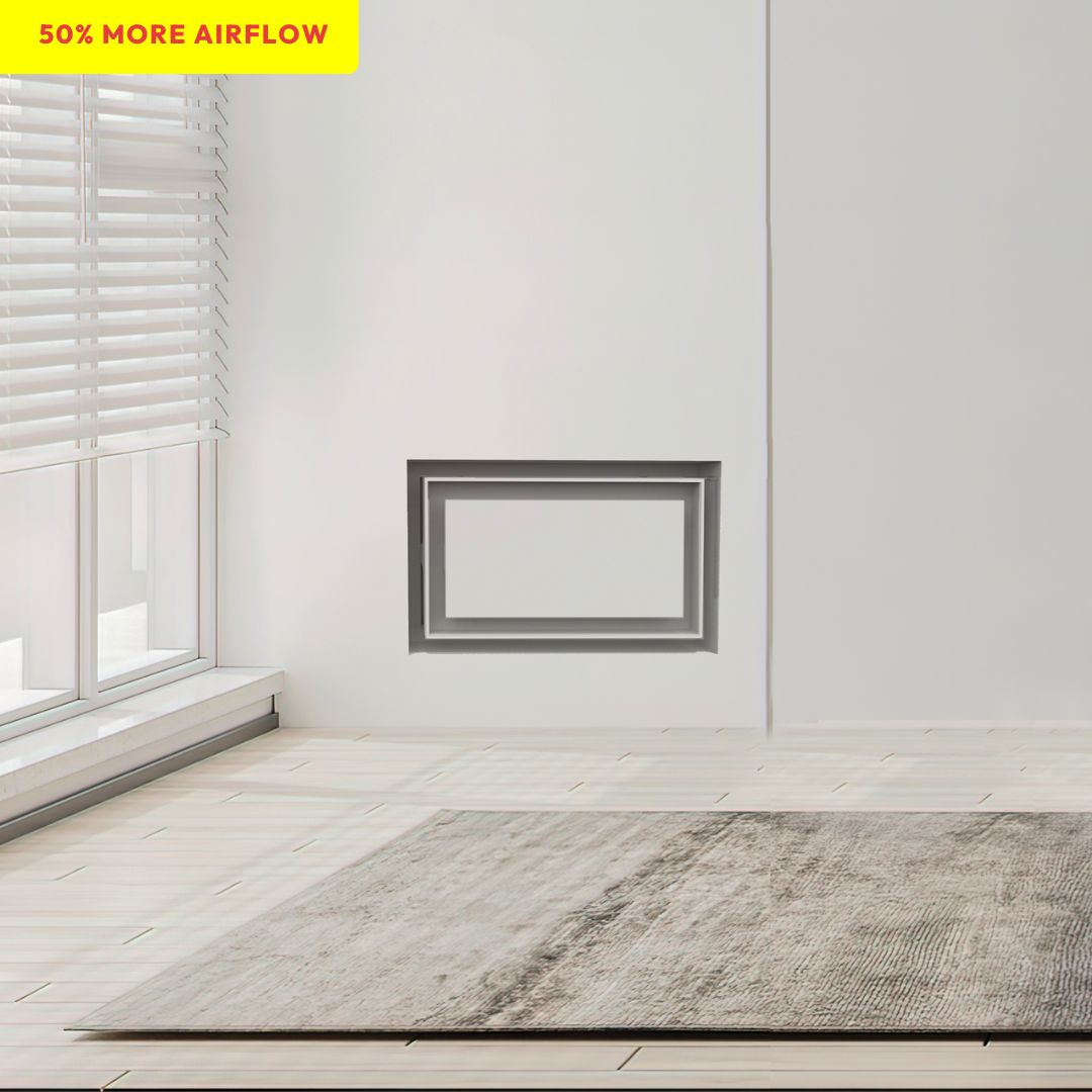 We've reimagined old-fashioned grille vents. This high-performance, ultra-minimalist design has all the features of the Flush Wall Vent [Lite]‚ plus a double air channel that delivers *+50% more airflow. It's great value with serious power.