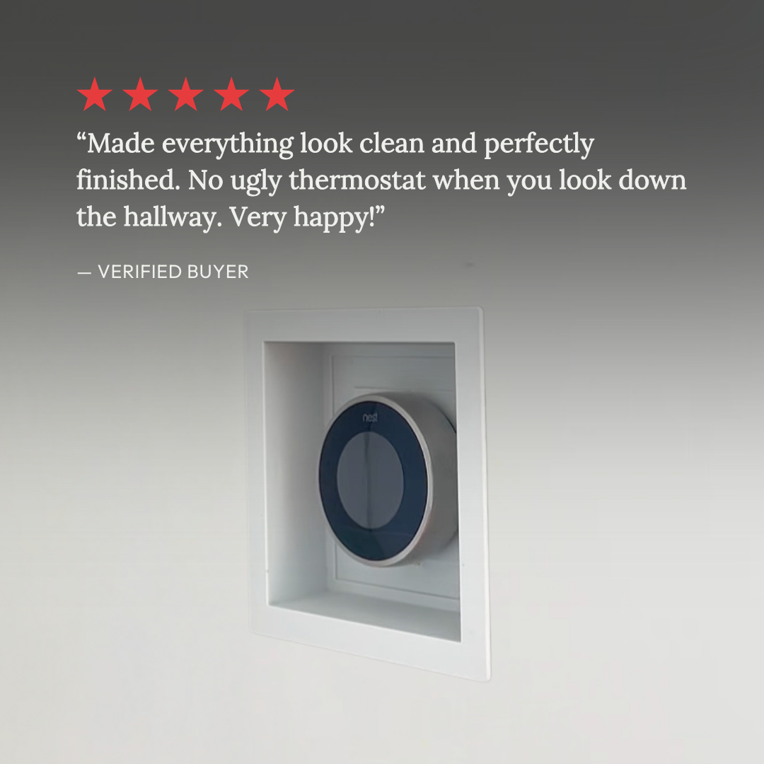 Ultra-minimalist device mount for smart thermostats such as Google Nest and ecobee and other small devices. Customizable, recessed ABS plastic mount with a framed finish for a seamless design that blends right into the wall or ceiling. Also an affordable alternative for recessed pot lights. Super-easy, DIY install in 15 minutes. Retrofit anytime.