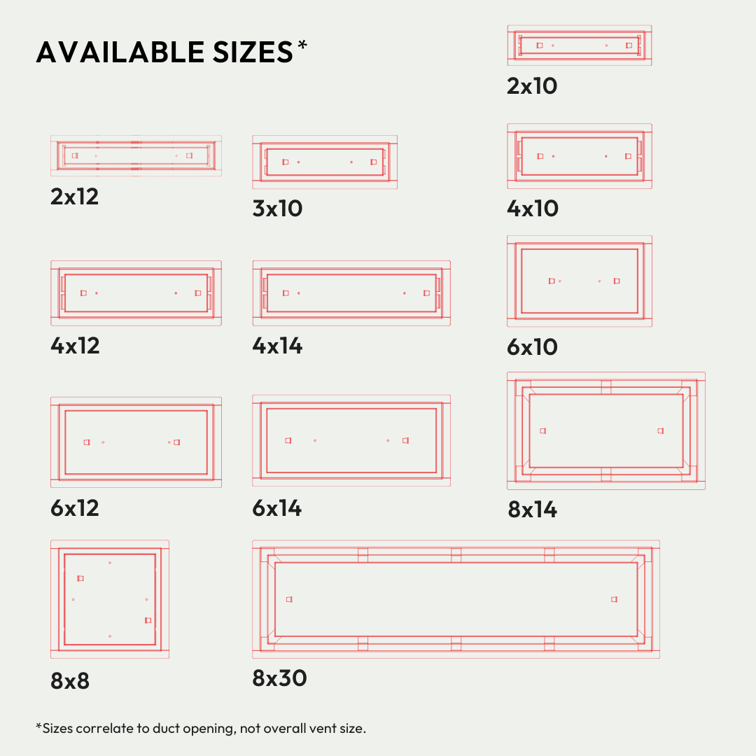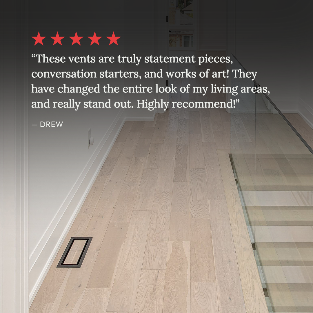 The Luxe+ model is high-performance design made for those who want more. With a double air channel, it delivers serious luxury +50% more airflow—an investment in both style and performance. It has all the features of the Framed Floor Vent [Luxe], plus added power for spaces that demand it. The standard Luxe model, with its single air channel, is still a solid choice for most spaces. All our vents are thoughtfully designed to give you the flexibility to choose what best fits your space.