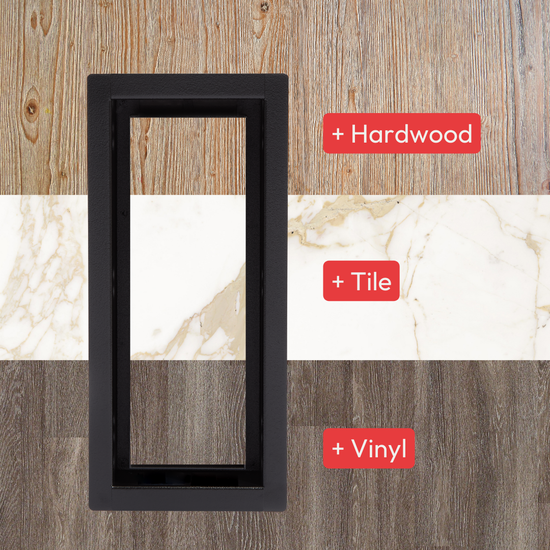 This is the Framed model — installation is simple and requires minimal tools. Just cut a piece of your flooring material, glue it onto the vent’s inner tray, and screw it in. In comparison, the Flush model needs to be professionally mounted at the subfloor level, before installing the surface material. Check our handy install guide for step-by-step instructions for both models.