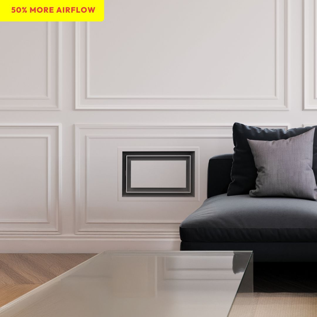 We've reimagined old-fashioned grille vents. This high-performance, ultra-minimalist design has all the features of the Framed Wall Vent [Lite]‚ plus a double air channel that delivers *+50% more airflow. It's great value with serious power.