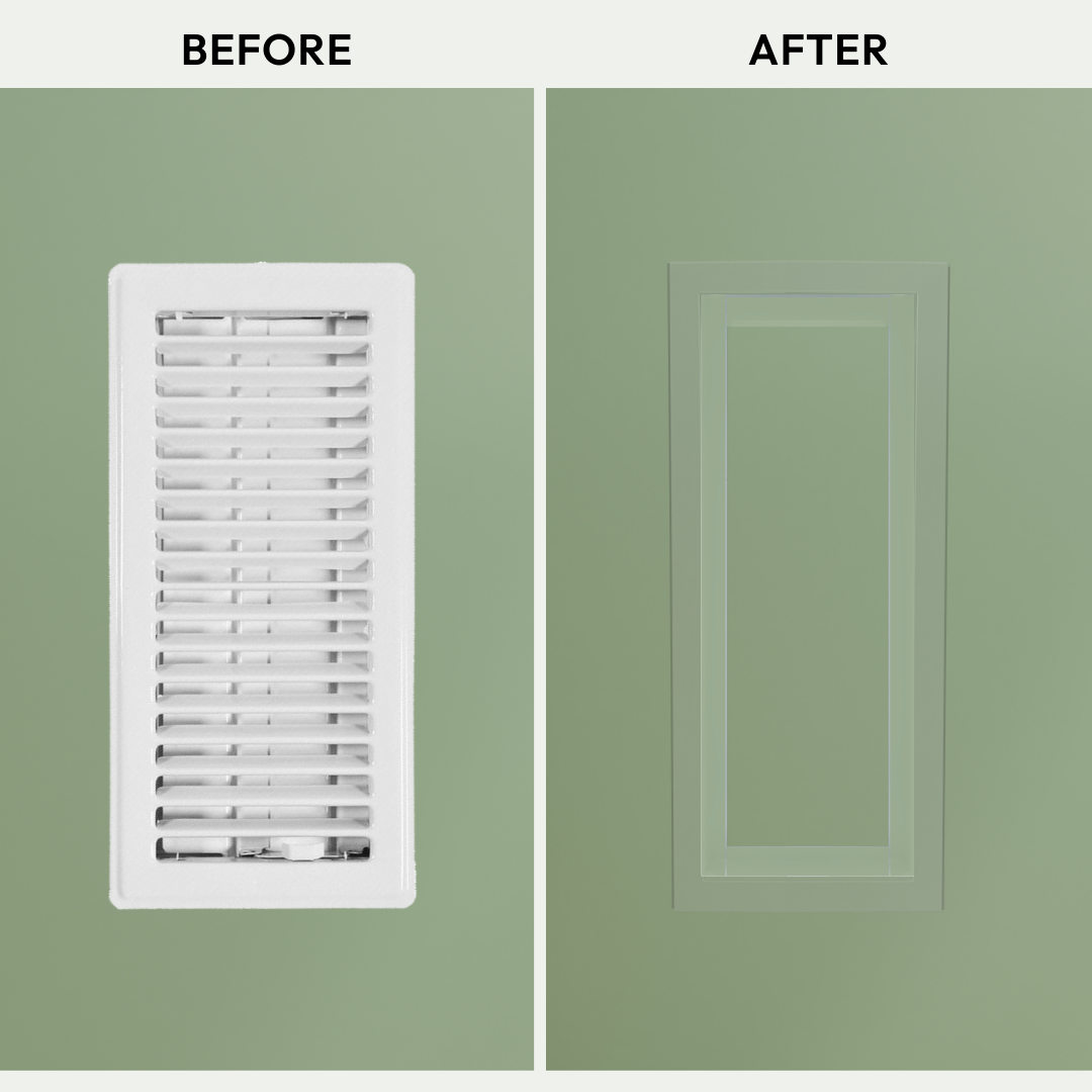 Better looking than a traditional grille, it’s an easy, affordable, brag-worthy upgrade to any space. Super-easy, DIY install in 15 minutes. Retrofit anytime. Drywall and HVAC-compatible.