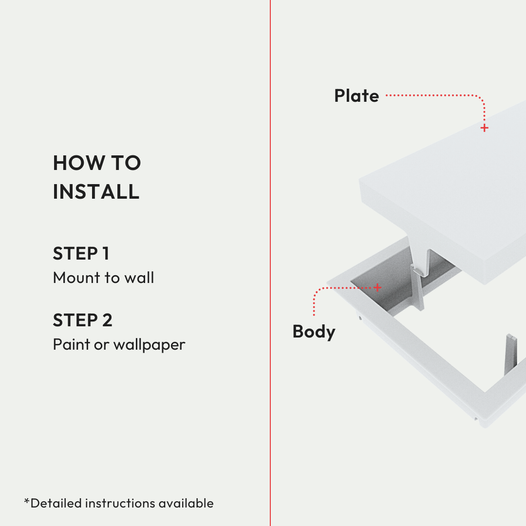 We've reimagined old-fashioned grille vents. This innovative, ultra-minimalist design blends seamlessly into the wall, with a paintable center plate that hides the vent in plain sight.