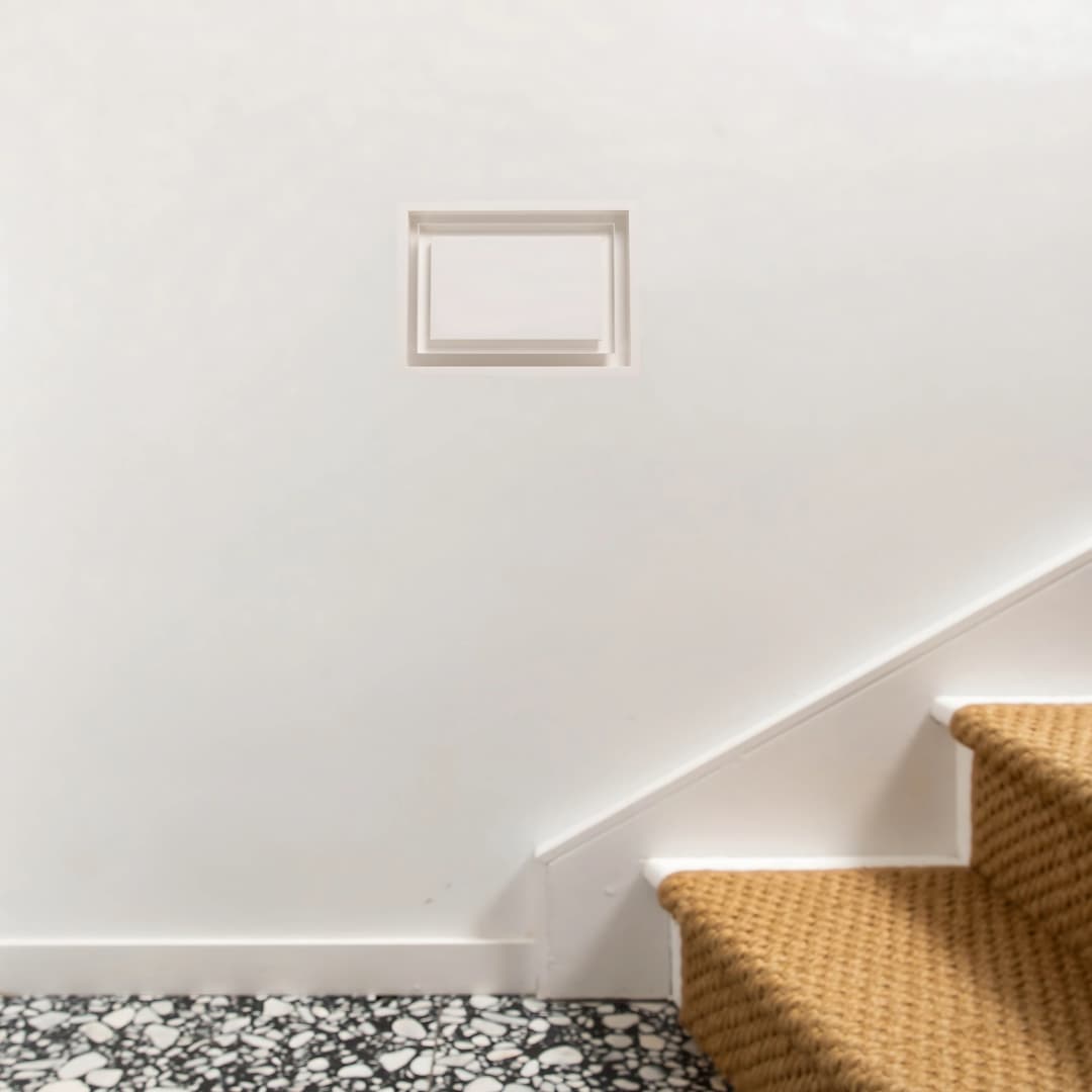 This is the Framed model—easy to install with just a few basic tools. Simply drop it into the duct and secure it with the included screws. The Flush model, on the other hand, involves mudding and sanding, so it’s better suited for someone with drywall experience. (If that’s not you, we suggest bringing in a pro!) For full step-by-step instructions, check out our install guide for both models.